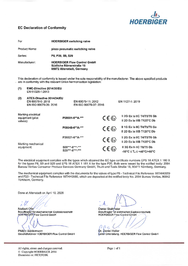ホルビガーのピエゾ技術が、この独自の優位性を支えています。低い消費電力により、本質安全構造かつATEX認証を取得したピエゾ式空気圧制御バルブは、ガス・粉塵・危険環境での用途に最適です。さらに、長寿命である点も特長です。